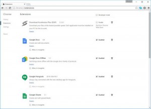 Τα πρόσθετα αυτά καταλαμβάνουν μνήμη και δεν υπάρχει λόγος να υπάρχουν εάν δεν τα χρησιμοποιείτε. Κάθε browser έχει τις δικές του ρυθμίσεις. Στον Google Chrome, ανοίξτε το μενού που βρίσκεται στα δεξιά, πατήστε το Settings και εκεί πατήστε το Extensions (εναλλακτικά μπορείτε να γράψετε chrome://extensions/ στη γραμμή διευθύνσεων). Εάν δείτε μια ατελείωτη λίστα με πρόσθετα και επεκτάσεις που δεν ξέρετε πως βρέθηκε εκεί, απλά δείτε όλα τα στοιχεία ένα προς ένα και διαγράψτε όσα δεν χρειάζεστε.